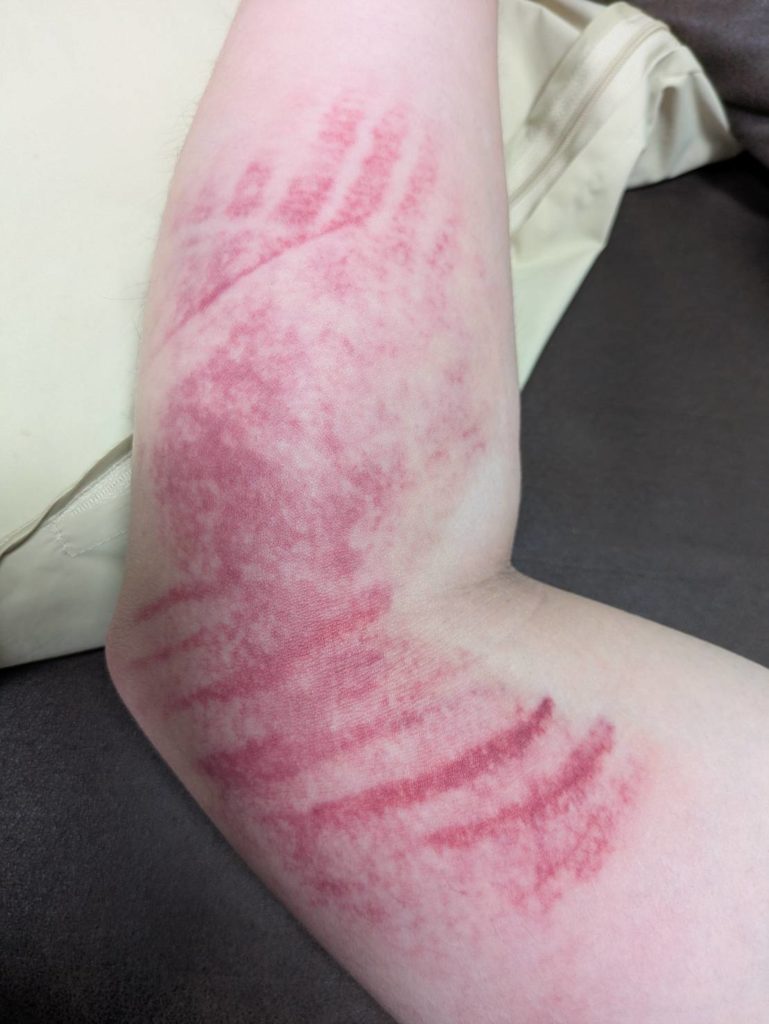 (カッサの痕。悪い血(瘀血)が皮膚表面に浮き出てきています)